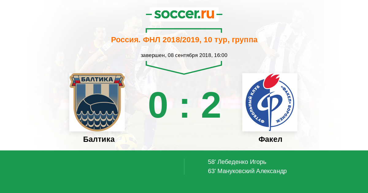 Протокол матча Балтика против Факел