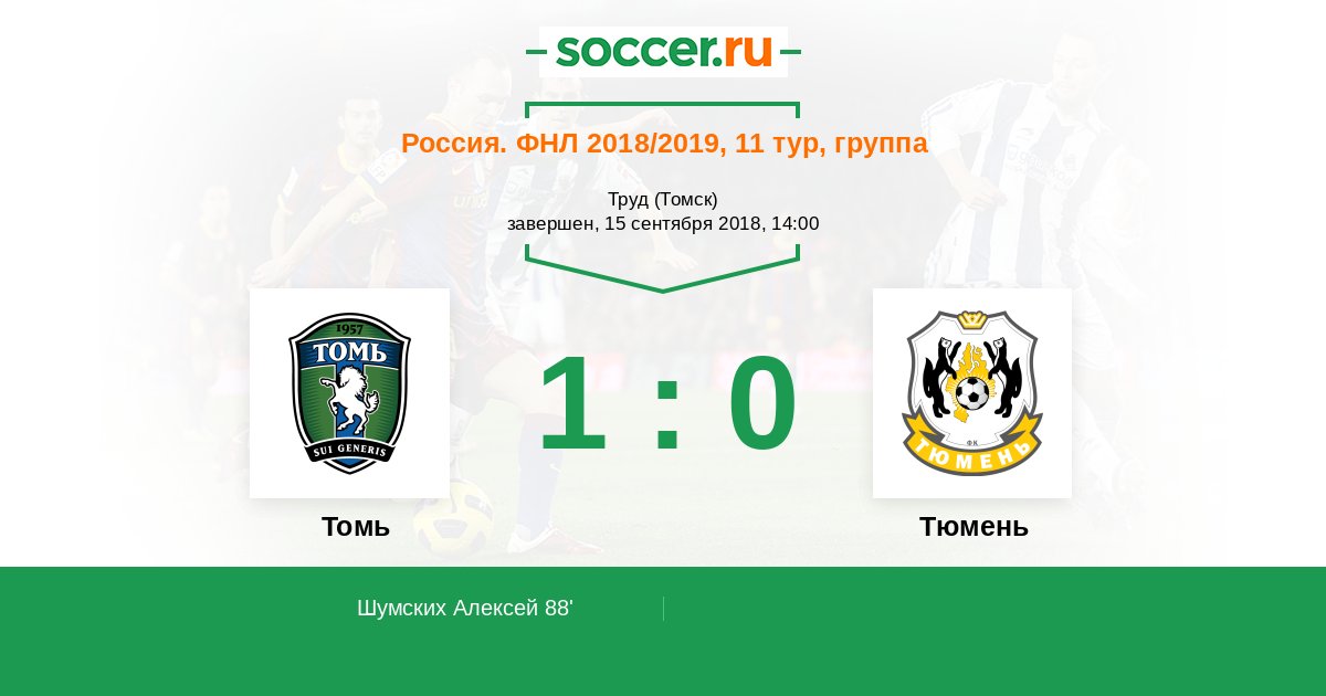 Протокол матча Томь против Тюмень