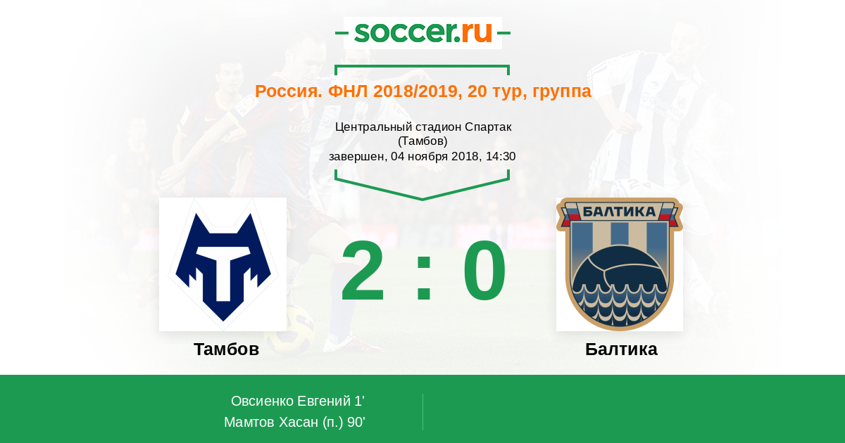 Протокол матча Тамбов против Балтика