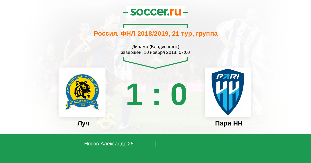 Протокол матча Луч против Пари НН