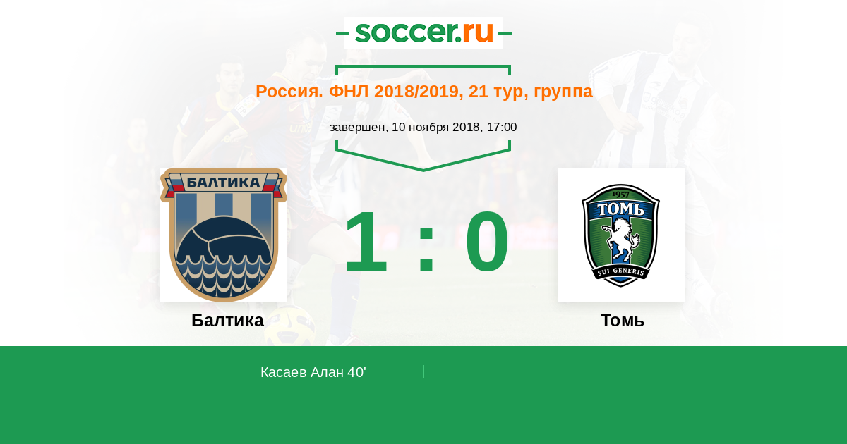 Протокол матча Балтика против Томь