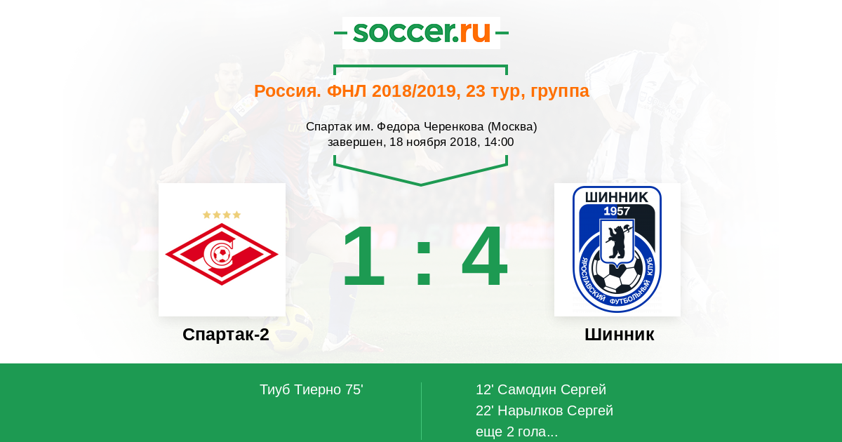Протокол матча Спартак-2 против Шинник