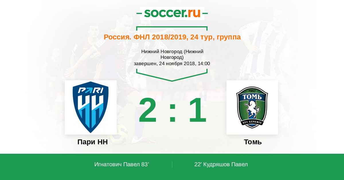 Протокол матча Пари НН против Томь