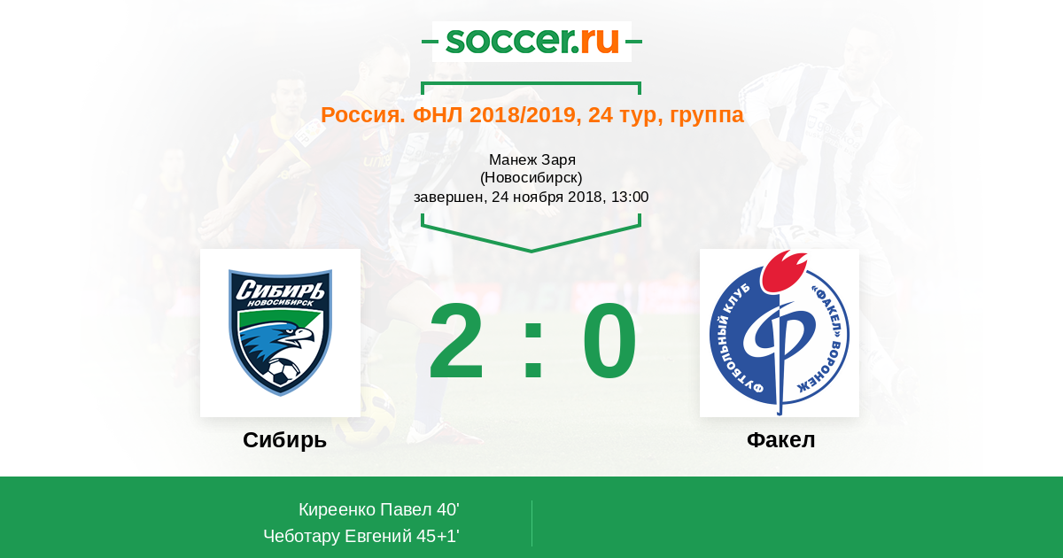 Протокол матча Сибирь против Факел