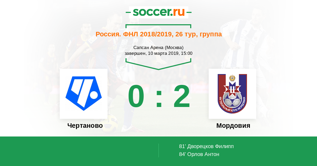 Протокол матча Чертаново против Мордовия