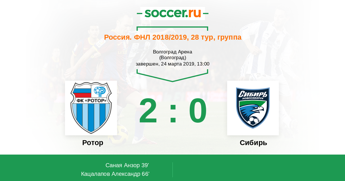 Протокол матча Ротор против Сибирь