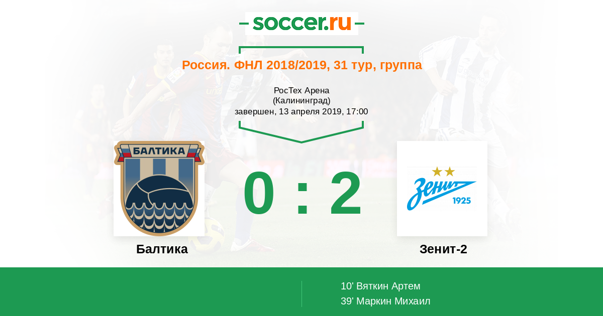Протокол матча Балтика против Зенит-2