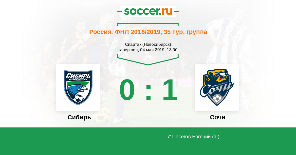 Протокол матча Сибирь против Сочи