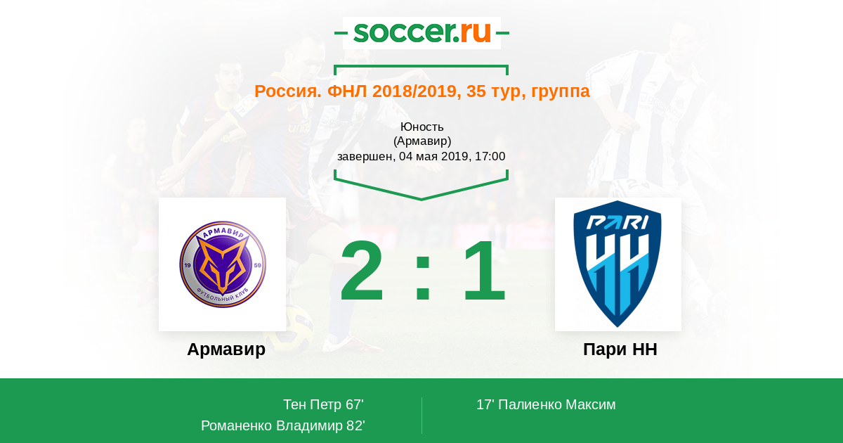 Протокол матча Армавир против Пари НН