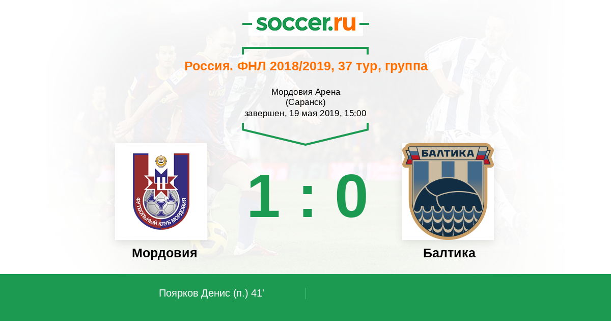 Протокол матча Мордовия против Балтика