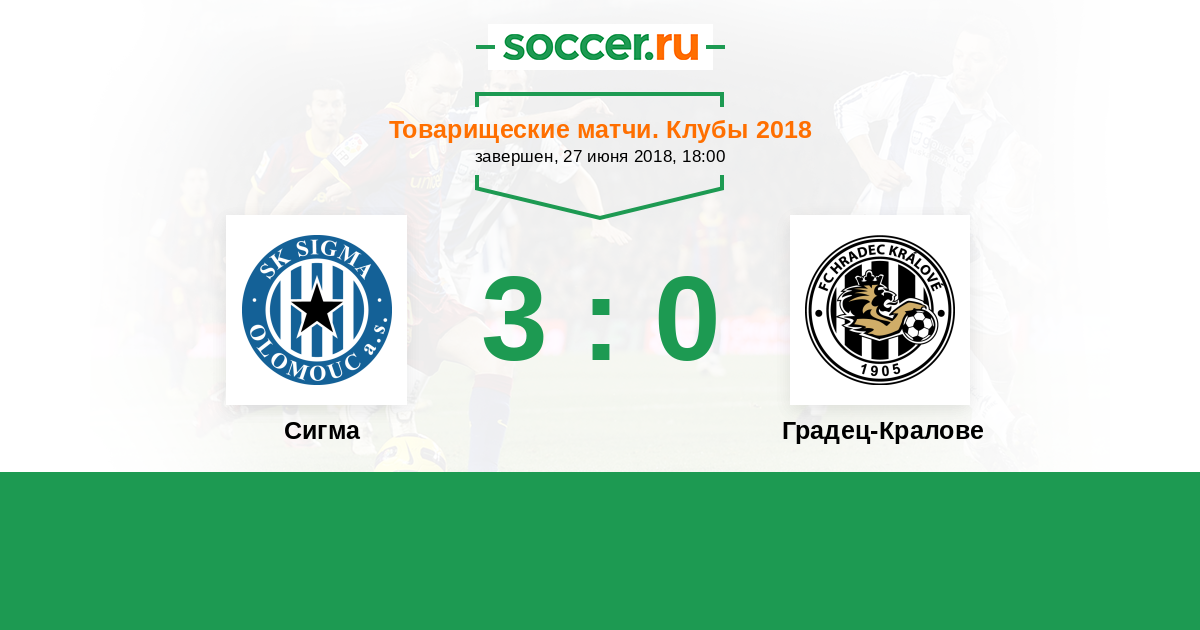 Товарищеские матчи. Клубы 02.07.2016 Сигма Логотип футбольный клуб Сигма (Оломоуц) 2:1 Логотип футбольный клуб Градец-Кралове Градец-Кралове