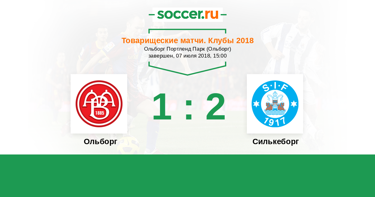 Дания. Суперлига 11.09.2017 Ольборг Логотип футбольный клуб Ольборг 2:1 Логотип футбольный клуб Силькеборг Силькеборг