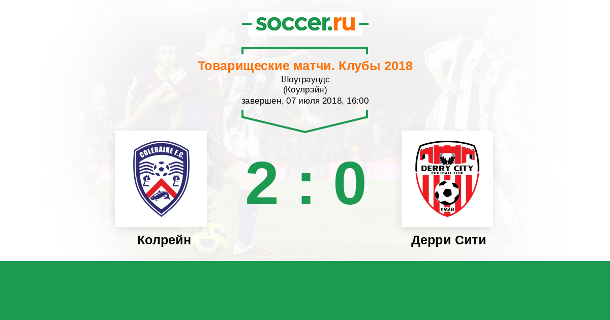История матча Колрейн против Дерри Сити