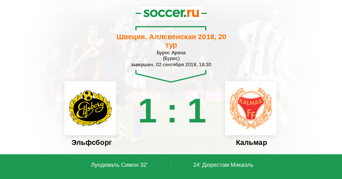 Протокол матча Эльфсборг против Кальмар