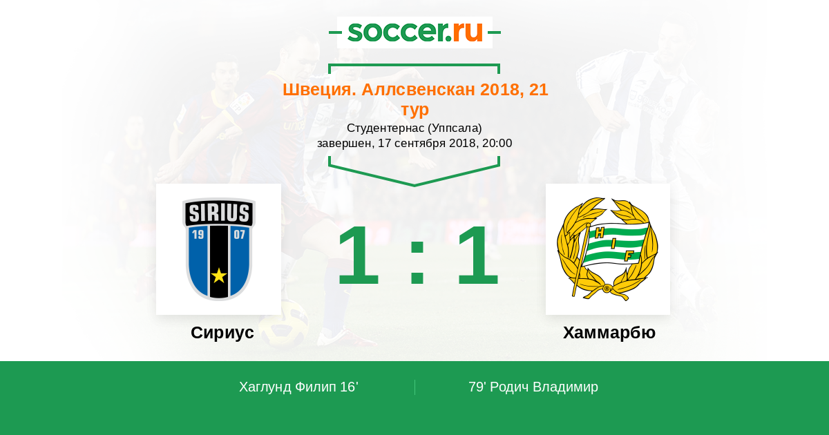 16' (1:0) Хаглунд Филип (23) (Йеспер Арвидссон (18))
