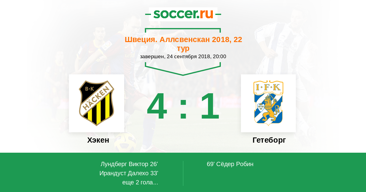 Протокол матча Хэкен против Гетеборг