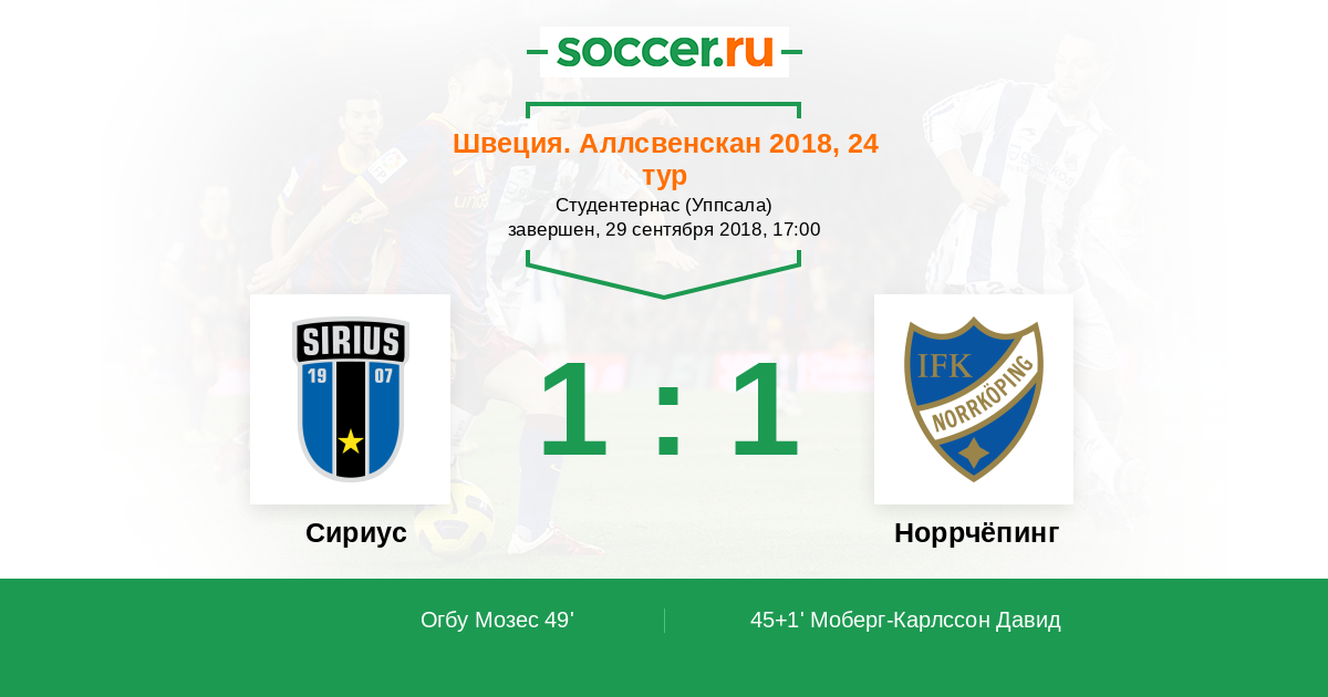 Протокол матча Сириус против Норрчёпинг