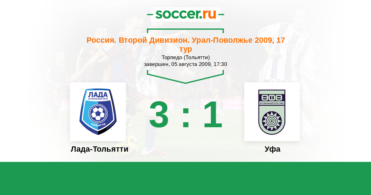 Россия. Вторая лига. Группа 4 26.04.2009 Уфа Логотип футбольный клуб Уфа 1:0 Логотип футбольный клуб Лада-Тольятти Лада-Тольятти