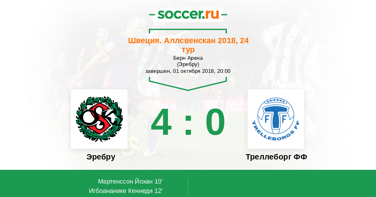 Протокол матча Эребру против Треллеборг ФФ