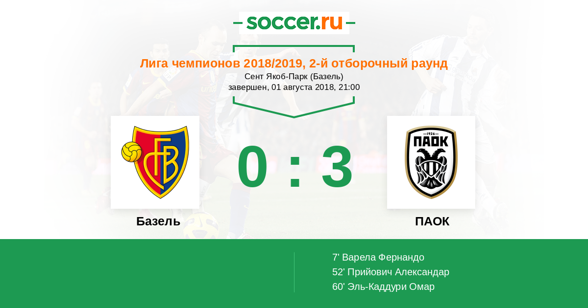 Протокол матча Базель против ПАОК
