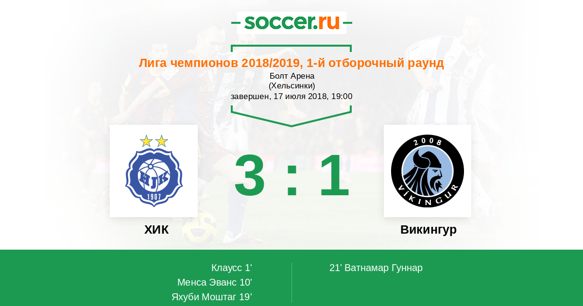 Протокол матча ХИК против Викингур