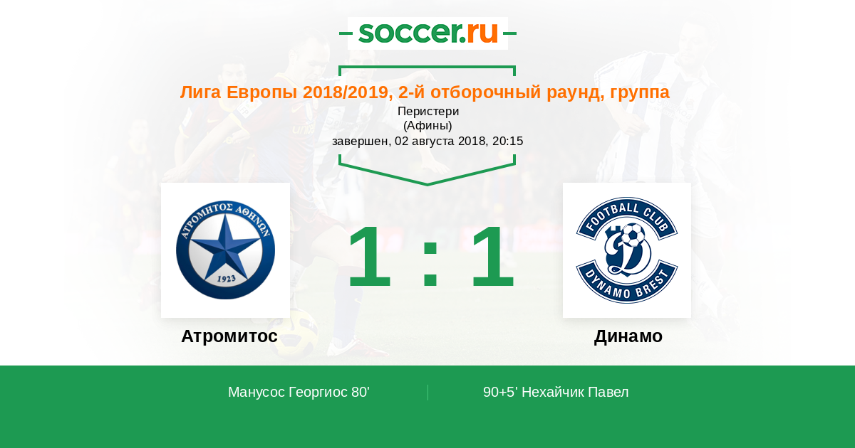 Протокол матча Атромитос против Динамо
