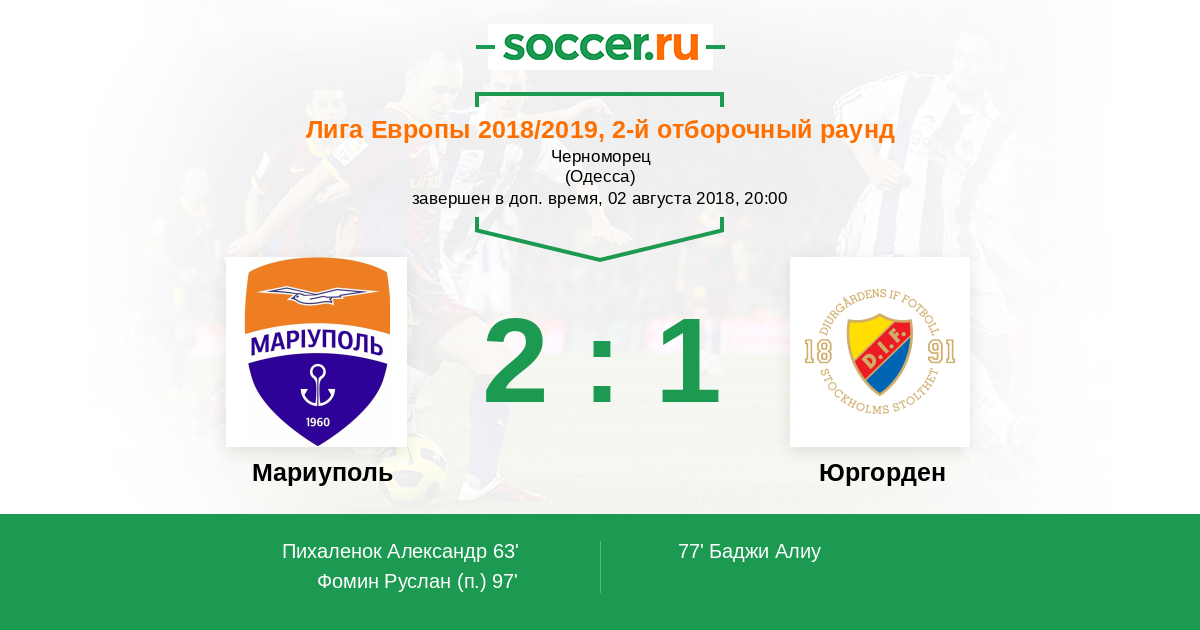 Протокол матча Мариуполь против Юргорден