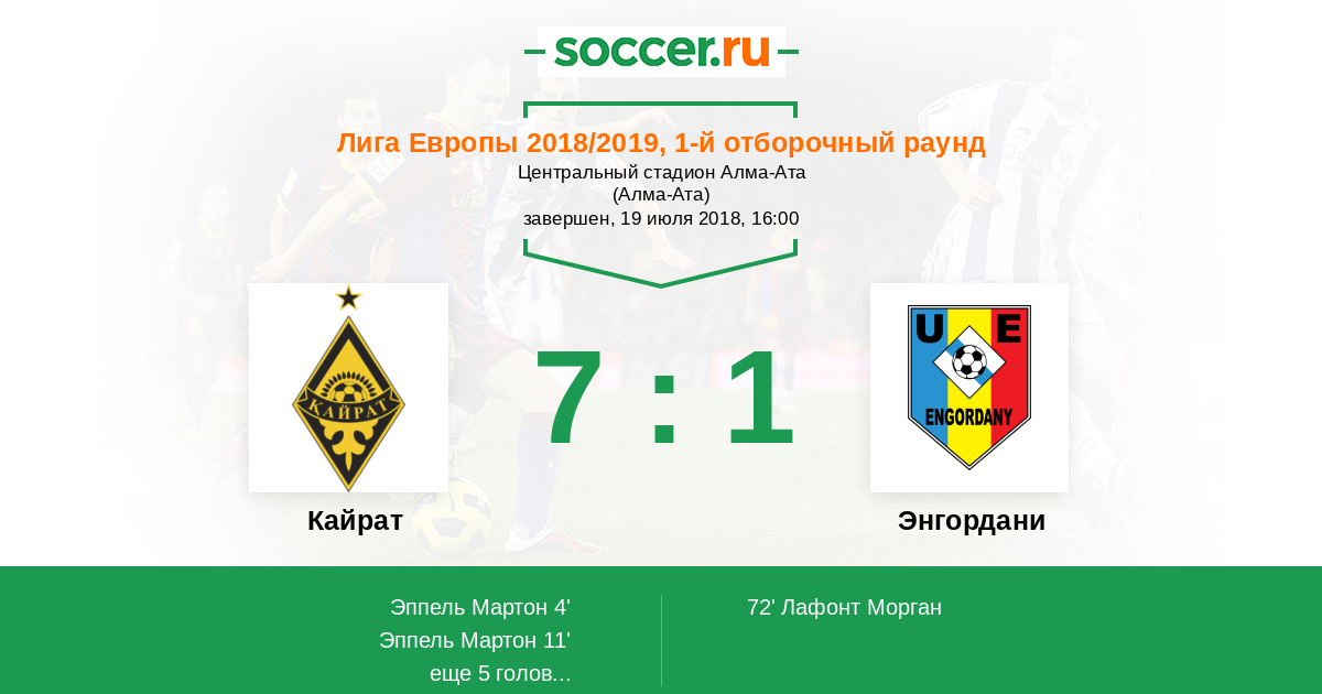 Протокол матча Кайрат против Энгордани