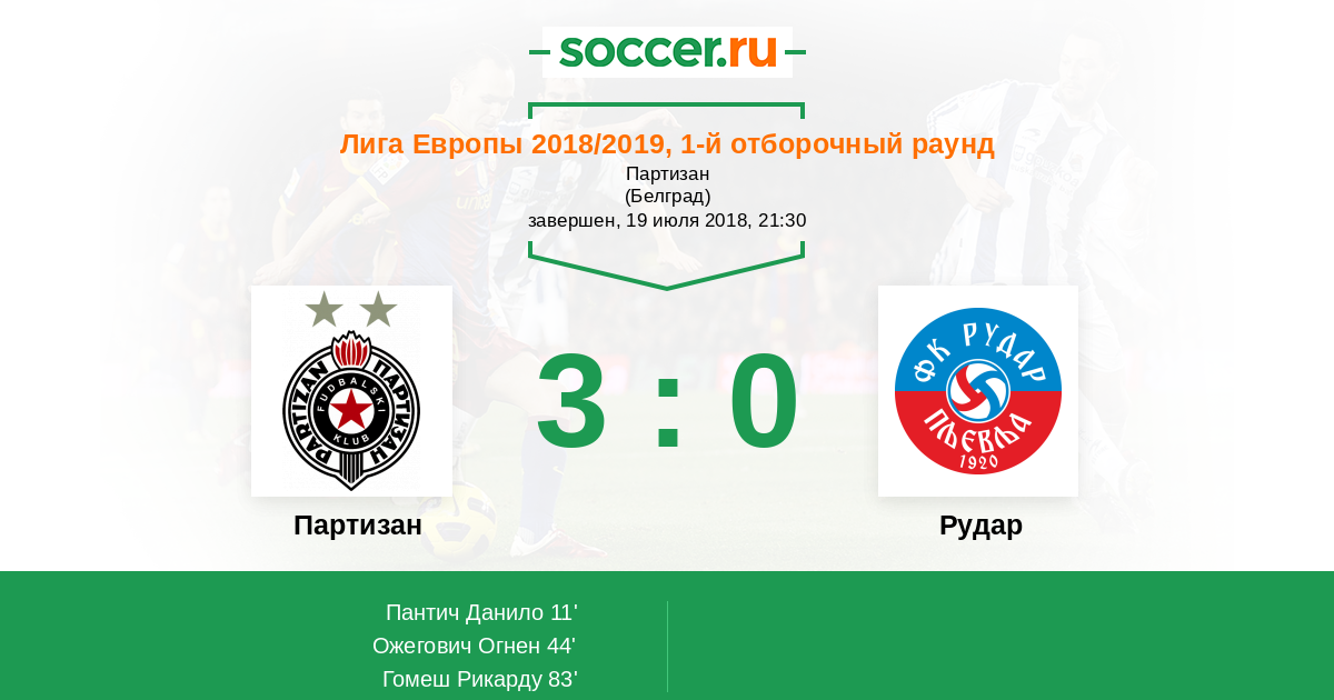Протокол матча Партизан против Рудар