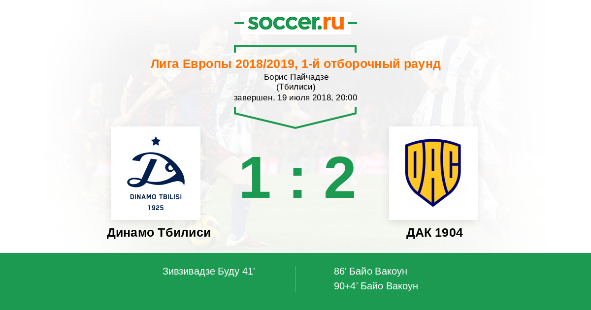 Протокол матча Динамо Тбилиси против ДАК 1904
