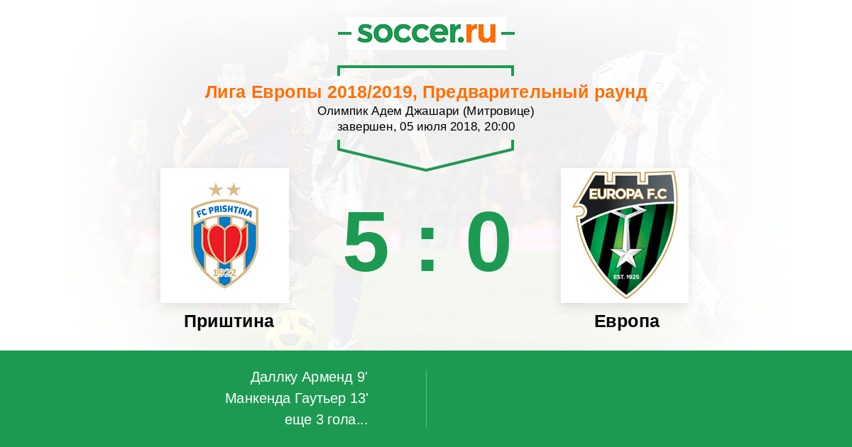 Протокол матча Приштина против Европа