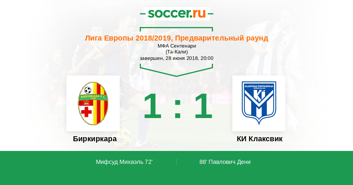 Протокол матча Биркиркара против КИ Клаксвик