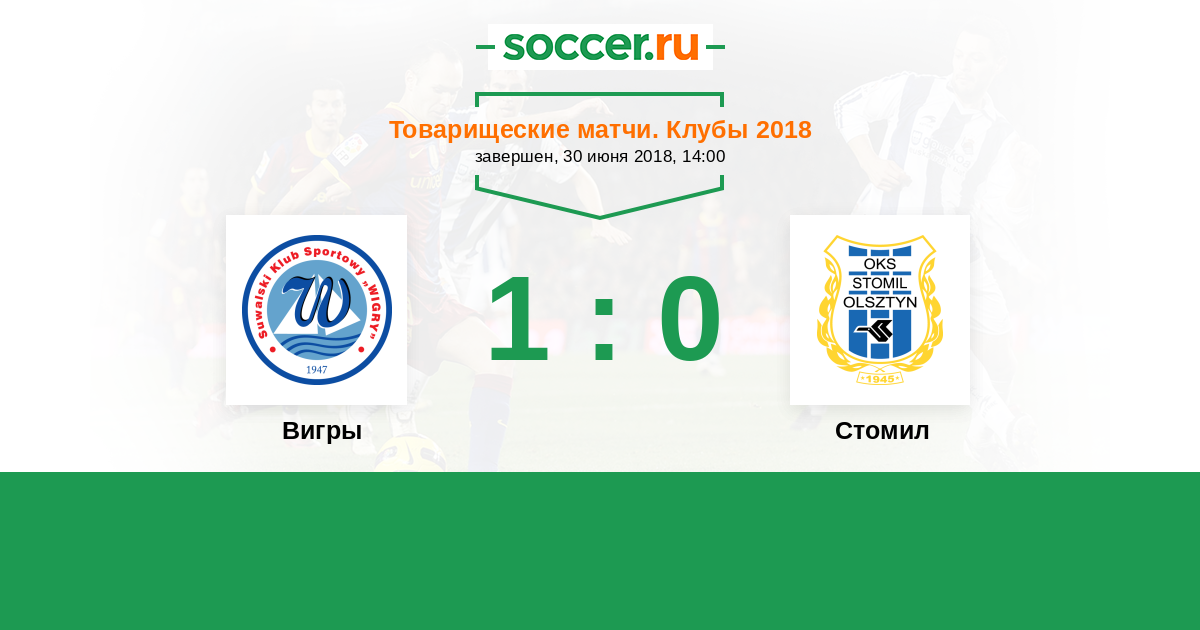 Польша. Первый дивизион 26.08.2018 Вигры Логотип футбольный клуб Вигры (Сувалки) 2:0 Логотип футбольный клуб Стомил (Ольштин) Стомил