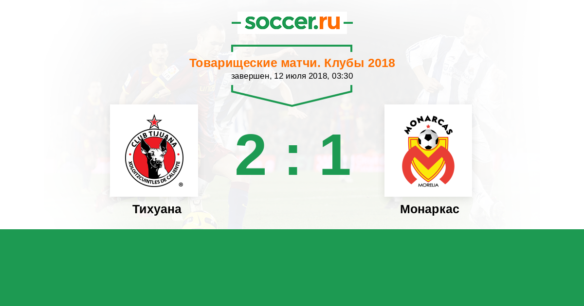 Мексика. Примера-Дивизион 16.07.2016 Тихуана Логотип футбольный клуб Тихуана 2:0 Логотип футбольный клуб Монаркас (Морелия) Монаркас