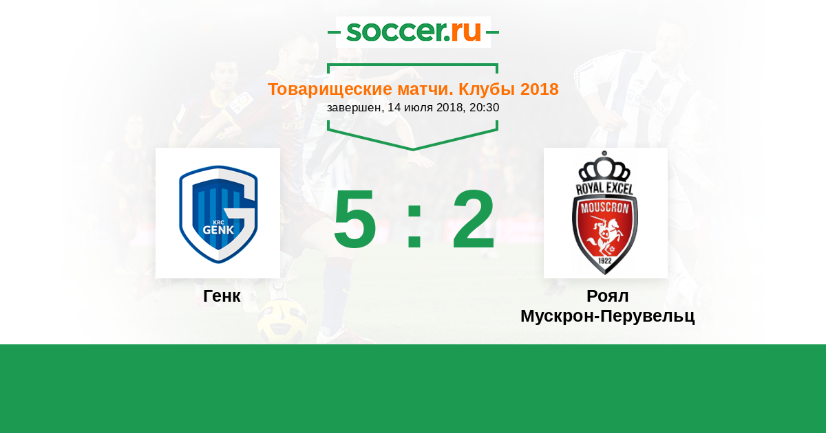 Бельгия. Про-Лига 20.09.2014 Роял Мускрон-Перувельц Логотип футбольный клуб Роял Мускрон-Перувельц 1:2 Логотип футбольный клуб Генк Генк