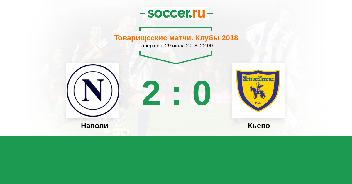 Товарищеские матчи. Клубы 22.07.2017 Наполи Логотип футбольный клуб Наполи (Неаполь) 1:1 Логотип футбольный клуб Кьево (Верона) Кьево
