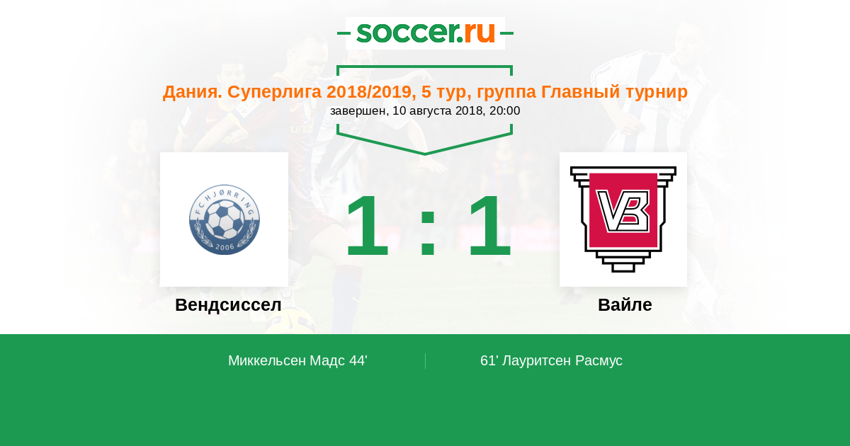 44' (1:0) Миккельсен Мадс (18) (Опондо Мосес (9))