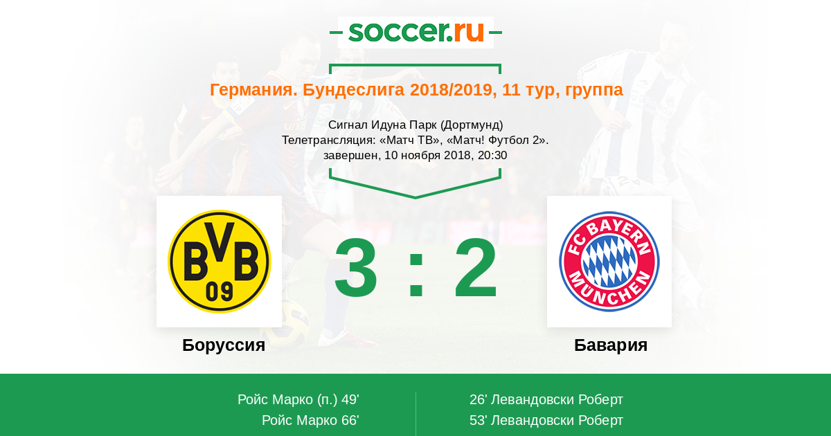 Протокол матча Боруссия против Бавария