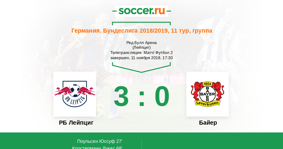 Протокол матча РБ Лейпциг против Байер