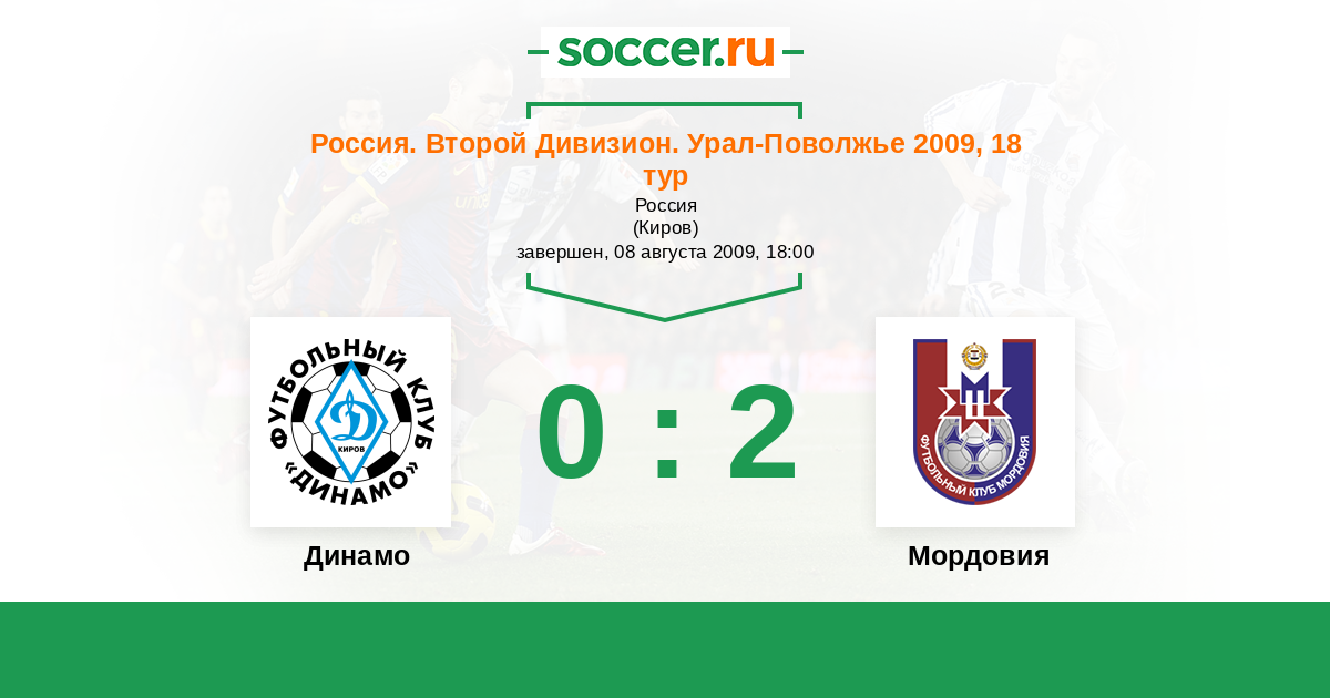Россия. Вторая лига. Группа 4 29.04.2009 Мордовия Логотип футбольный клуб Мордовия (Саранск) 2:1 Логотип футбольный клуб Динамо Киров Динамо Киров