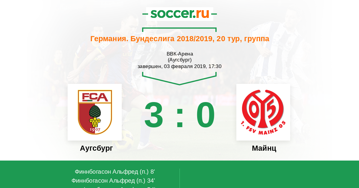 Протокол матча Аугсбург против Майнц