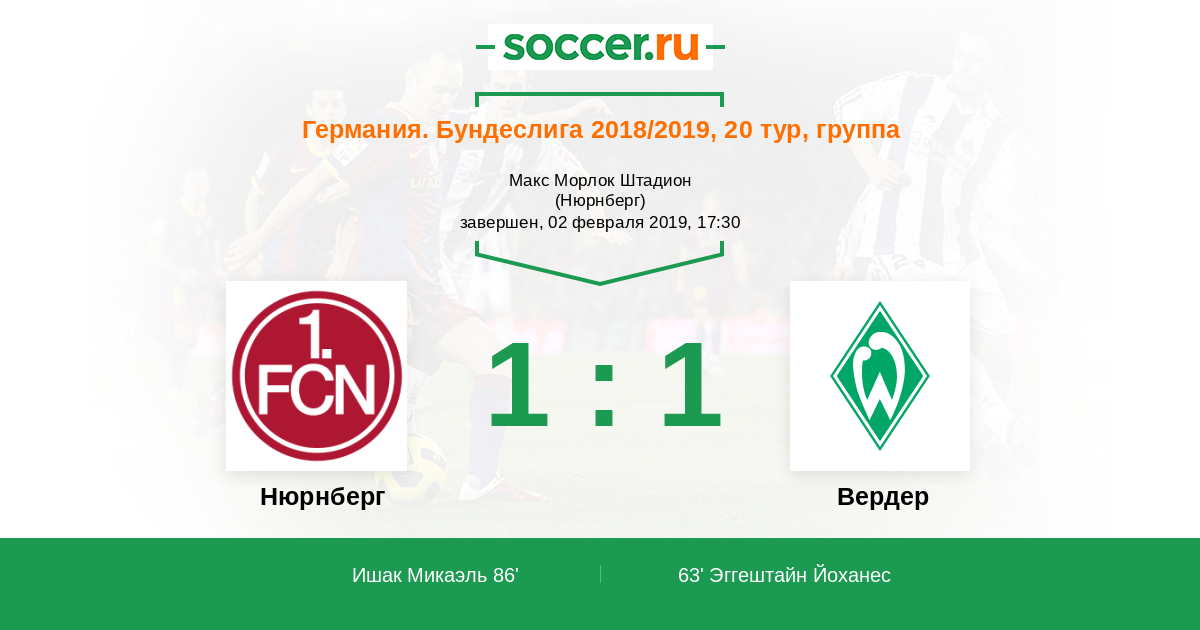 Протокол матча Нюрнберг против Вердер