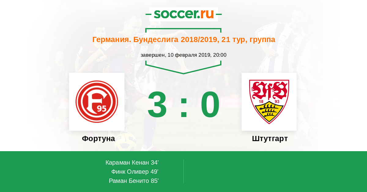 Протокол матча Фортуна против Штутгарт