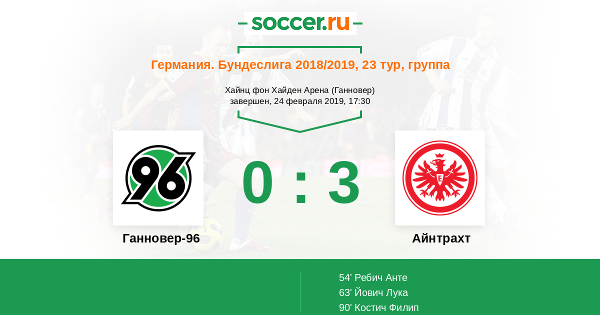 Протокол матча Ганновер-96 против Айнтрахт