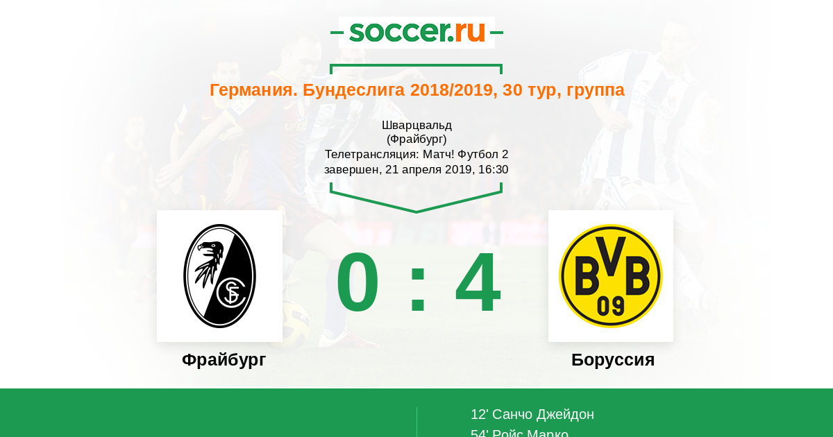 Протокол матча Фрайбург против Боруссия