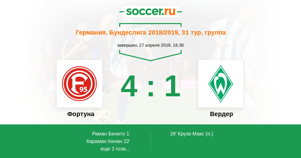 Протокол матча Фортуна против Вердер