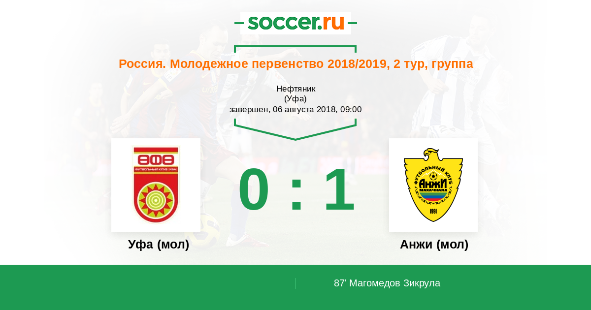 Протокол матча Уфа (мол) против Анжи (мол)