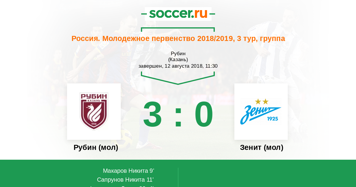 Протокол матча Рубин (мол) против Зенит (мол)