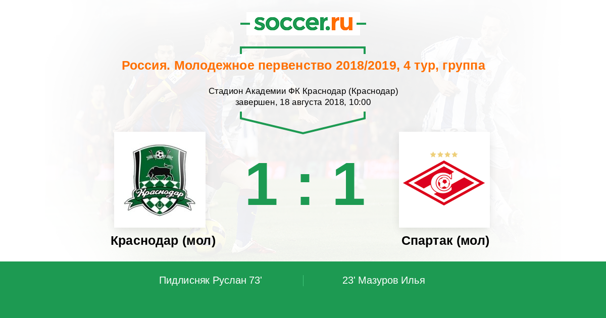 Протокол матча Краснодар (мол) против Спартак (мол)
