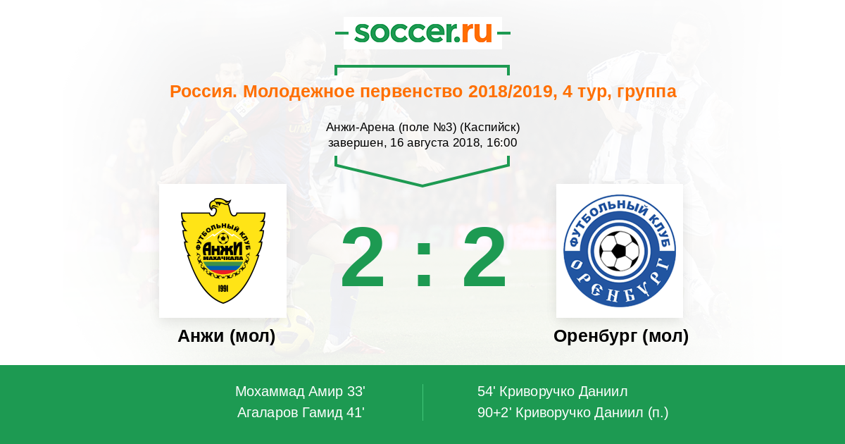 Протокол матча Анжи (мол) против Оренбург (мол)